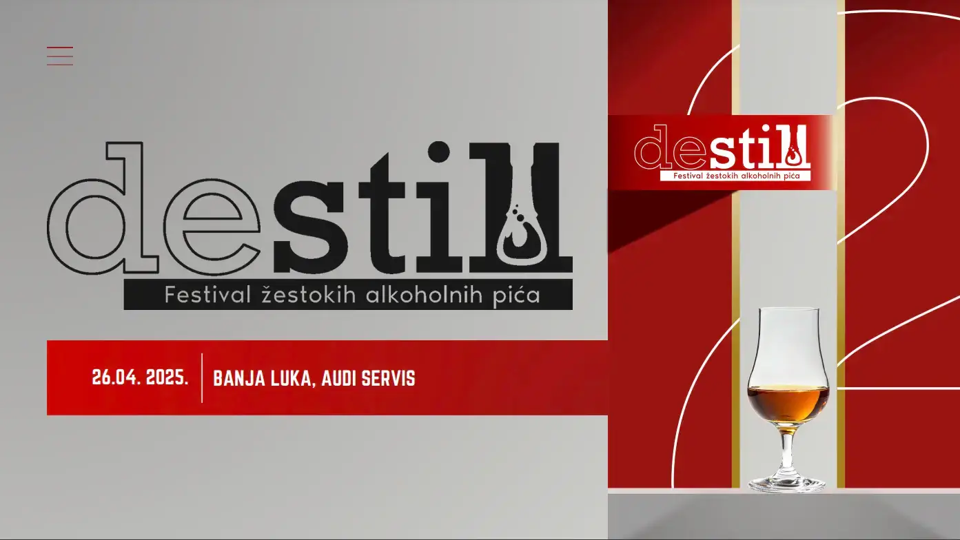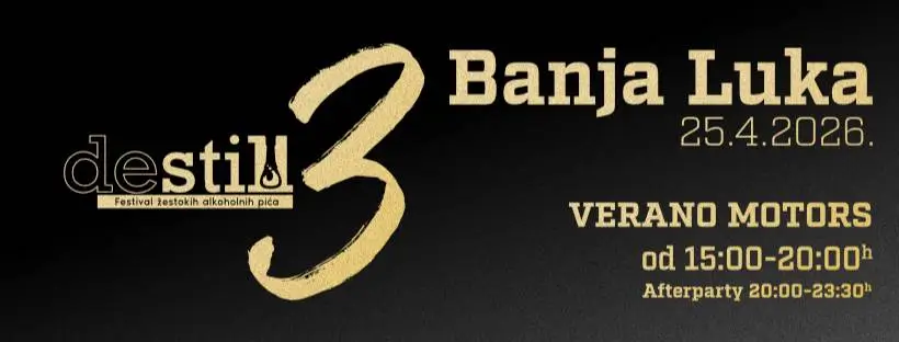 Nakon dva uspješna izdanja, DeStill Fest se vraća u još većem i uzbudljivijem formatu! U subotu, 25. aprila 2026. godine, prestižni Verano Motors centar u Banjaluci postaje epicentar vrhunskih destilata i nezaboravne atmosfere.Više od 65 izlagača iz regiona i svijeta predstaviće širok spektar premium pića – od rakija i gina, preko konjaka i viskija, pa sve do ruma, tekile i likera.- Veče se nastavlja uz kreativne koktele pripremljene od najfinijih destilata, uz muziku i druženje.