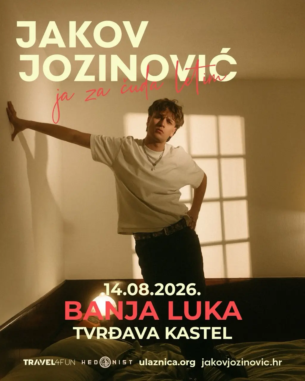 Jakov Jozinović, nakon rasprodanih koncerata širom regiona, dolazi u Banjaluku u okviru turneje "Ja za čuda letim".Nastup će se održati 14. avgusta na tvrđavi Kastel i biće jedan od najznačajnijih muzičkih događaja ljeta u gradu na Vrbasu.Poznat po snažnoj interpretaciji i autentičnom muzičkom izrazu, Jakov je osvojio publiku i medije, a njegovi koncerti prepoznati su po emociji i energiji koja osvaja od prvog trenutka. Uz vrhunsku produkciju i posebnu atmosferu Kastela, publiku očekuje veče koje će se dugo pamtiti.