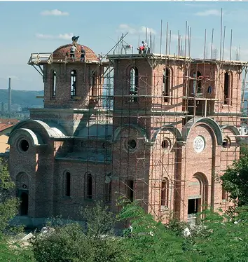 The construction of the temple began with the blessing of Bishop Ephraim, with the preparation of the terrain, excavation and laying of the foundation.