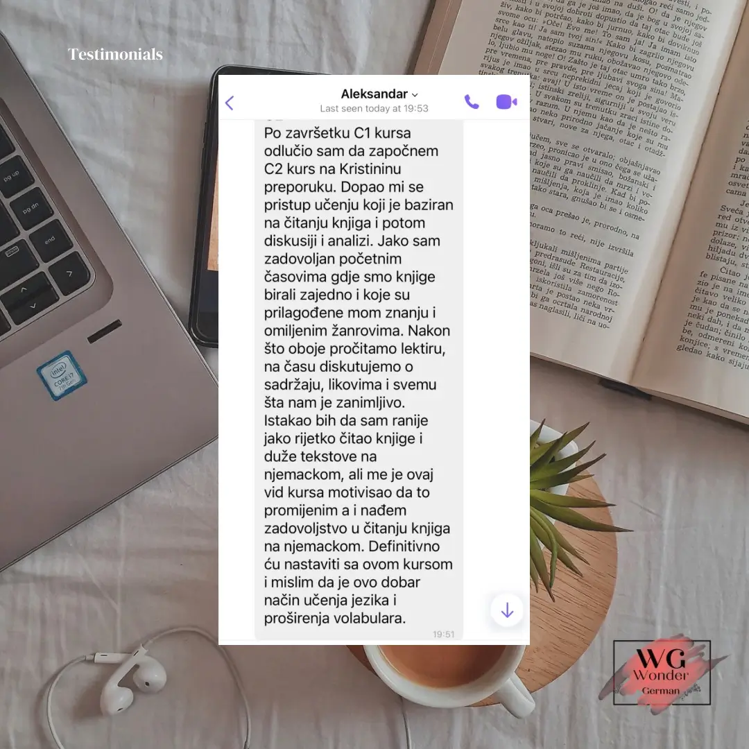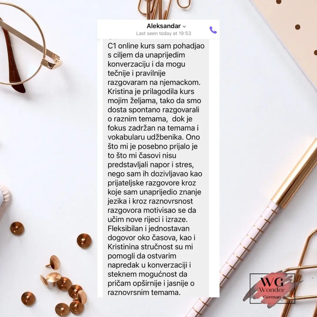 Manifesta WW nudi online časove njemačkog jezika, prevode sa njemačkog na srpski jezik i obrnuto kao i spremanja za ispite od strane diplomiranog profesora njemačkog jezika i književnosti, sudskog tumača za njemački jezik i licenciranog Gete ispitivača - Kristine Čulić Gajić.