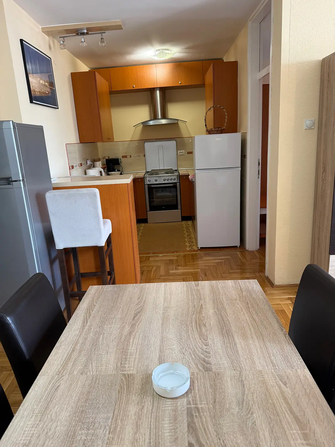 Ugodan, prijatan i vrlo komforan apartman u mirnom dijelu grada. Gostima su na raspolaganju francuski ležaj za dvije osobe u spavaćoj sobi i trosjed na razvlačenje u dnevnoj sobi na kojem mogu komotno da spavaju još dvije osobe. Stan se nalazi na trećem spratu stambene zgrade.